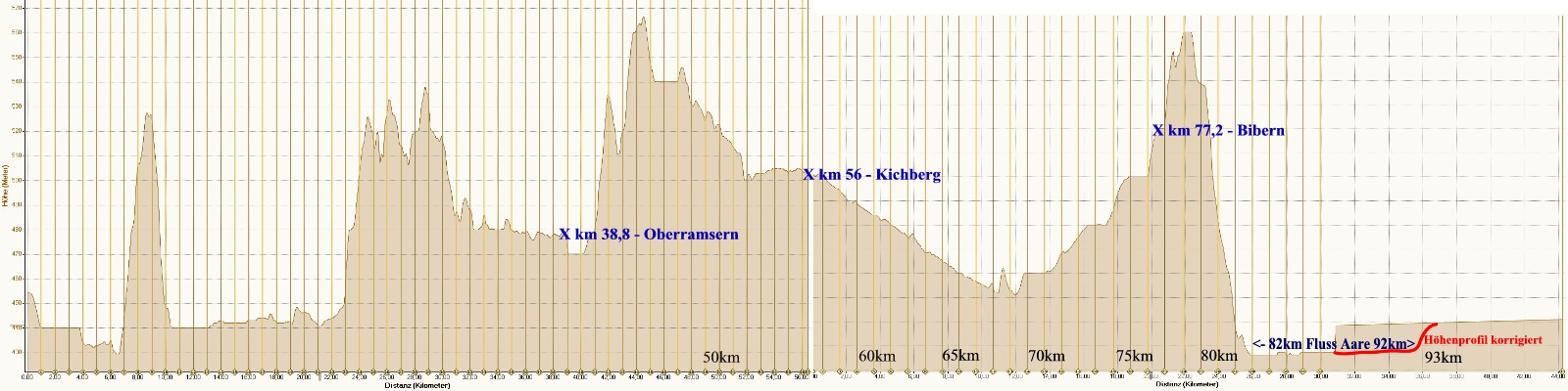 welligen Kurs bis nach Biel. Ab Kilometer 95 wurde dann jeder Kilometerabschnitt